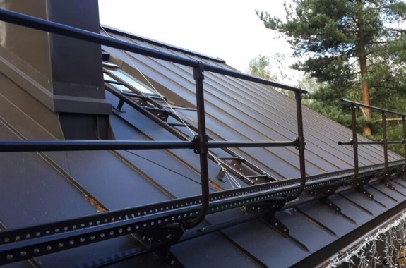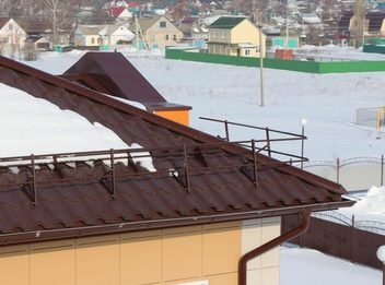 Функции: защищает водосточную систему, людей и транспорт от возможного схода снега и льда со ската крыши, а также размещенные на кровле оборудование и аксессуары (например, антенны).